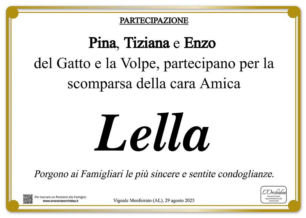 I familiari ringraziano anticipatamente tutti coloro che parteciperanno alla cerimonia funebre e tutti coloro che scriveranno con affetto un Pensiero di Ricordo.