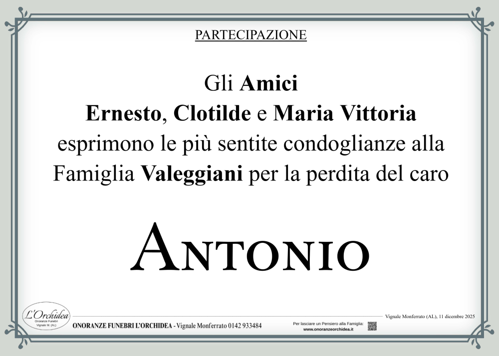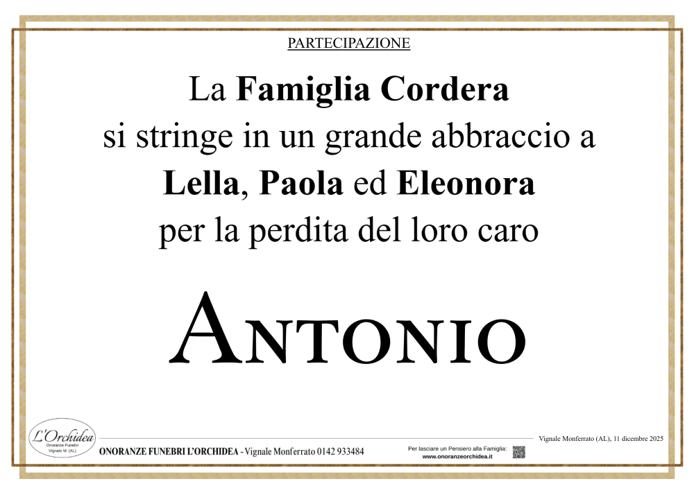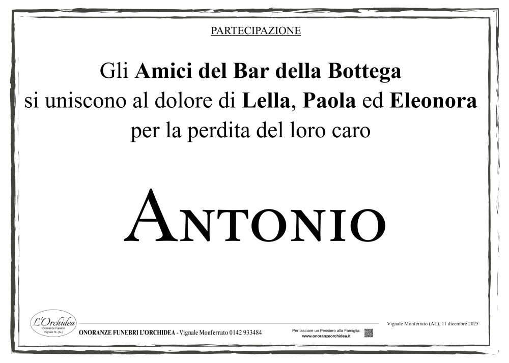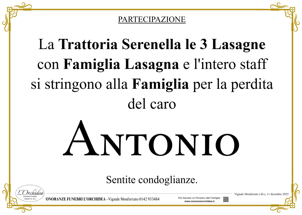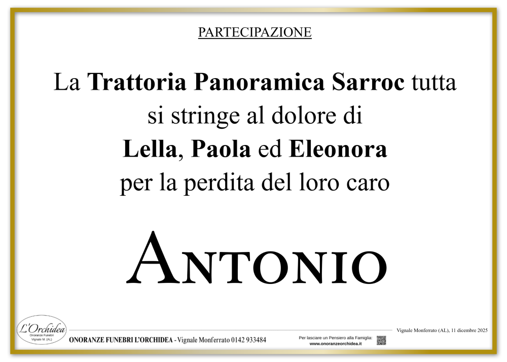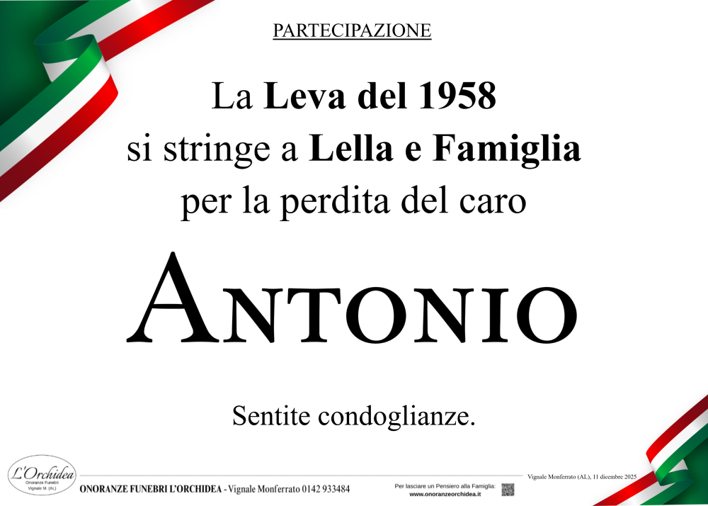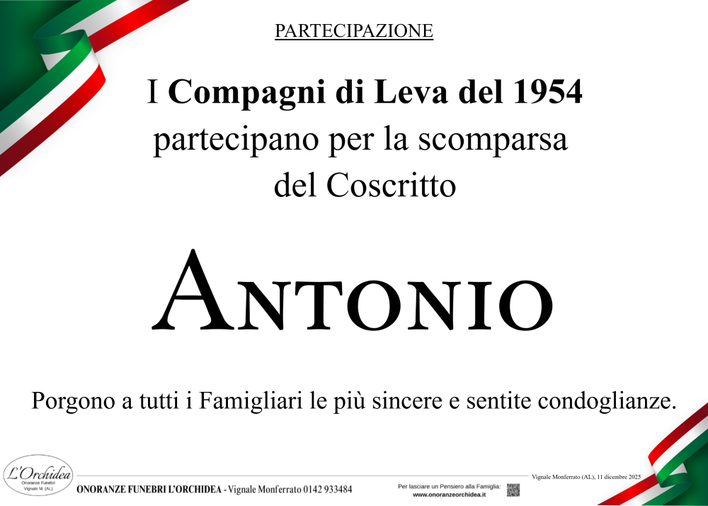 Sentite condoglianze a tutta la famiglia per la dipartita del caro Antonio.