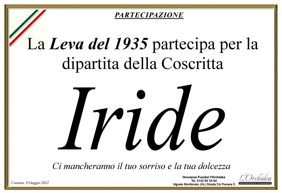 Sono molto addolorata per la scomparsa di Iride, che ricordo con molto affetto. Riposi in pace